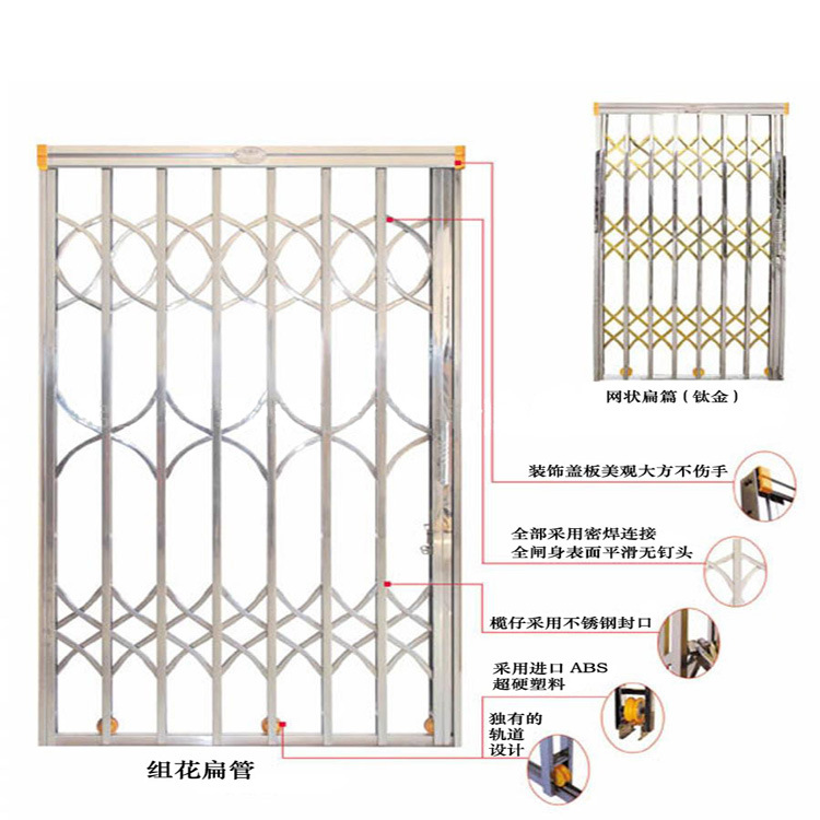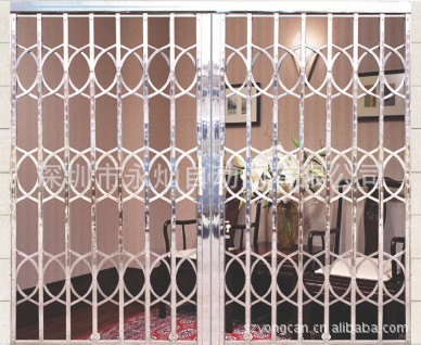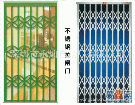 拉闸门根据不同的加工材质:不锈钢推拉门,钢制拉闸门;根据其连接方法分:叉型拉闸门,钱式滑动门,集网滑动门,封闭式滑动门。主要型材由不锈钢制成,可以锁紧和敞开,使用便捷,外形美观,式样多样稳固,结实。关闭后可预防盗窃,敞开时在门上占用的空间很小,并且不影响采光。