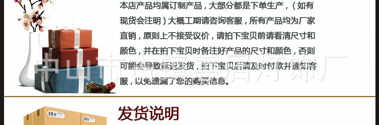 2.货物将在付款后的24小时内发货,想要订购的人将在大概12天内寄出。发货时间加上在货运路上费用的时间是您从订购到收货的时间。所以请掌握订购时间,以免耽误您的装修时间。