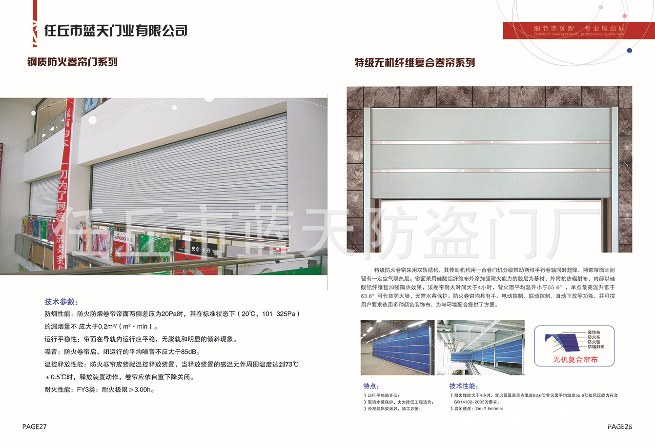 产品详情:蓝天门业是一家专业生产钢质防火门,木质防火门,防火窗,防盗门,防火卷帘门,不锈钢工艺门,车库门,地下室门,管井门的企业。专业的生产装置和生产线,丰厚的技术力量和先进的管理经验。机架使用三维设计,具备抗冲击,抗老化,耐腐蚀,不生锈的优点。经典风格与现代技术的完美结合反映了门的造型技术和实用价值。它在当前门市场上具备与众不同的风度和超凡脱俗的工艺,内部专业的工艺设计合理,为您量身定制精细制造,以满足特别场合的艺术和机能需要。