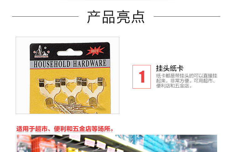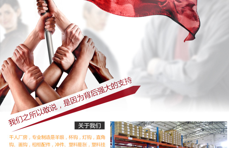产品详情:我公司专业生产羊眼螺丝;杯钩@@@;螺丝钩,灯钩;相片钩直角钩锯齿;水暖配件挂齿;紧固件直角连接器;装潢五金洋服;汽机配件摩托车配件;塑料制品;方括号DIY小五金;相框配件,金属挂钩;塑料脚