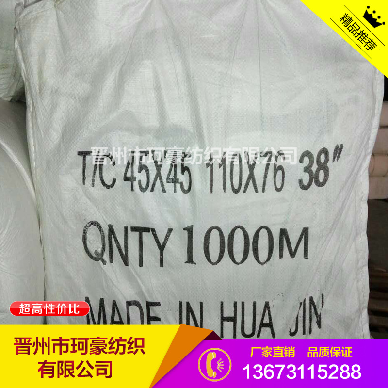 晋州市珂豪纺织有限公司是一家集纺纱,织造,印染和销售为一体的多元化公司。南邻307国道,北靠石黄高速路口,西邻晋州downtown----新世纪商城(服装销售市场),地理位置优越,交通简便,英环境优越。全年销售各种纯涤纶,纯棉和涤棉坯布,漂白和染色织物,适用于各种工装织物,袋子,袋衬,床上用品,诊所,酒吧和工业用织物。产品出口到法,美,美国,印度,日本和国内上海,福建,广州,浙江,山东,港澳台和其他国家和地区地区,市场前途!公司的主旨质量是生命,诚信是发展。您选项我选项一个机遇。深信所有客户都能与我们愉悦协作,协同发展。晋州市珂豪纺织有限公司期望您的来电,以便我们为您提供真心的服务。