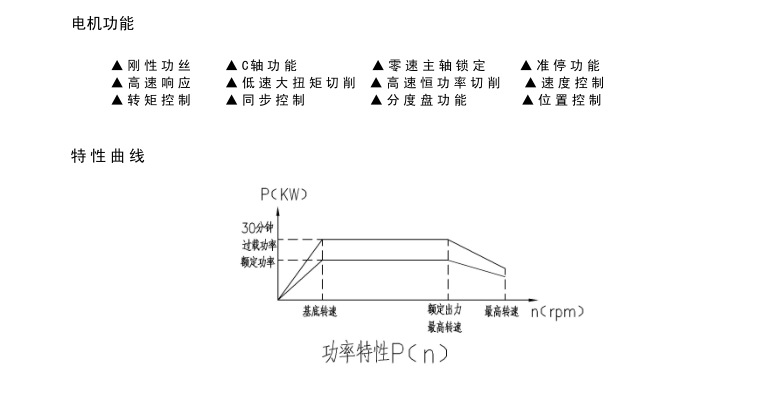 产品详情:电机功能:刚性攻丝高速响应转矩控制c轴功能低速大扭矩切削同步控制零速主轴锁高速恒功率cutting分度盘function准停功能速度控制位置控制