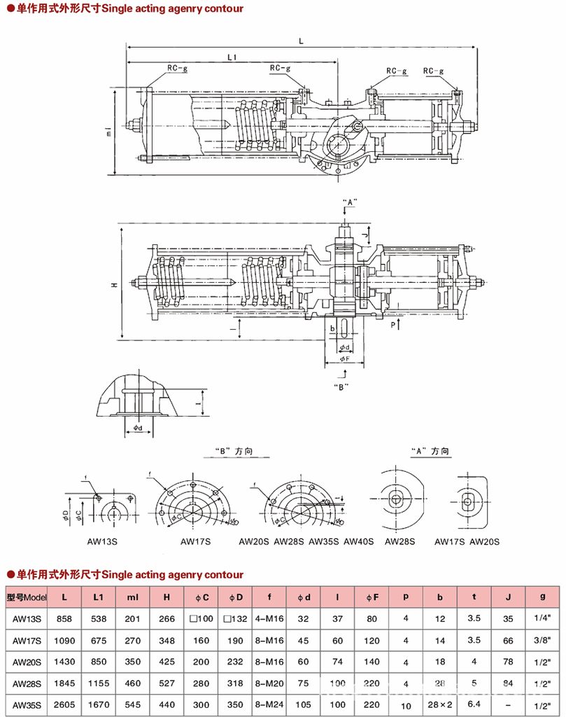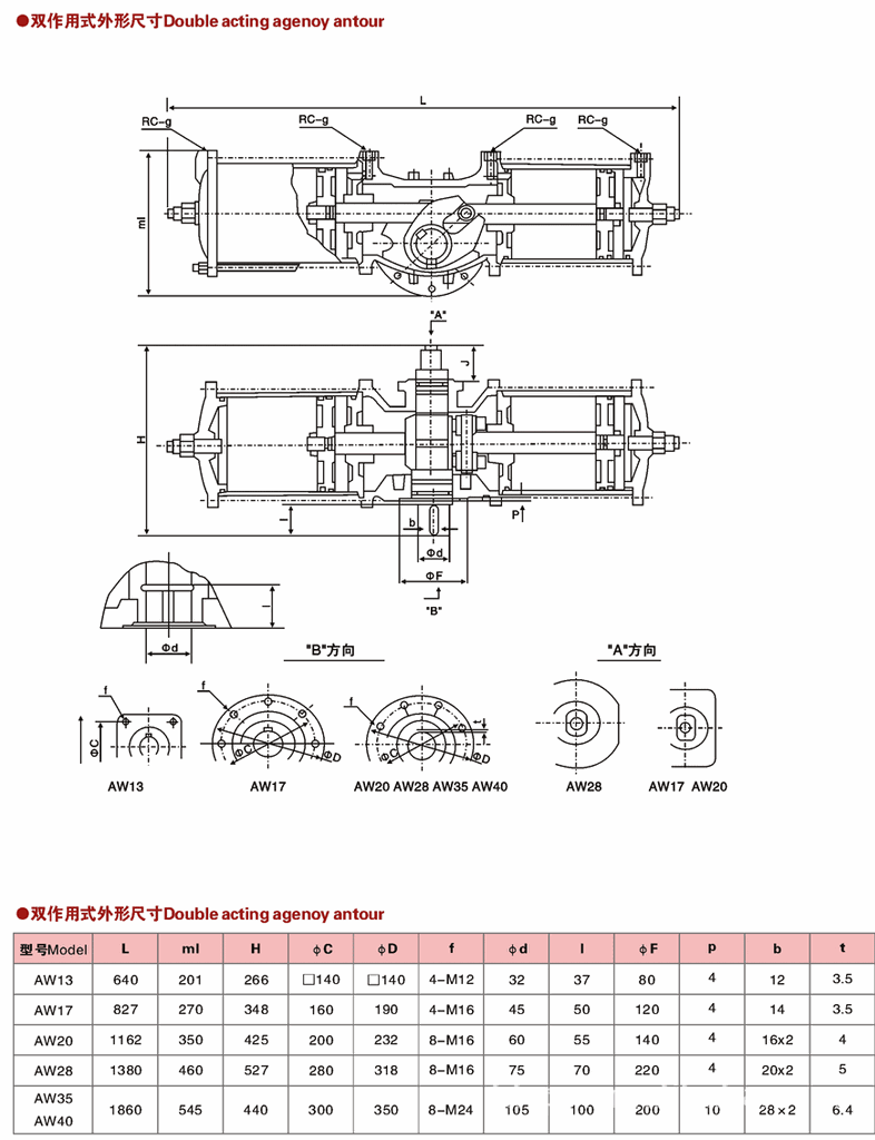 6.基本设计:气动双缸双活塞叉驱动机构。型号aw=双作用;modelAWS=单作用(弹簧复位)。
