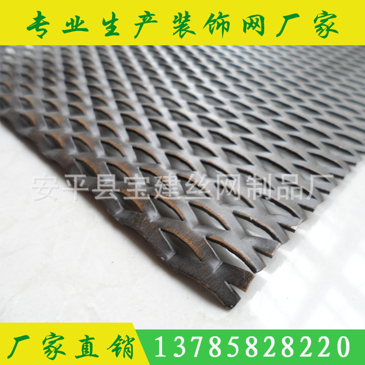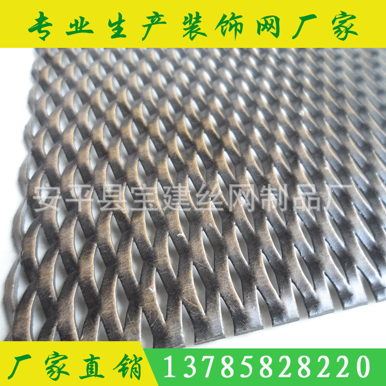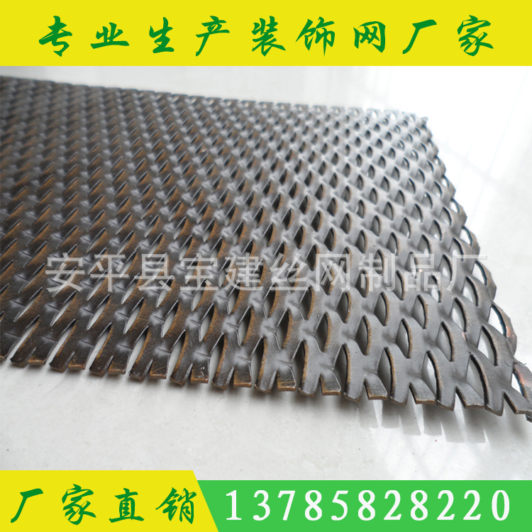 产品详情:装饰板网顾名思义是指:钣金由特别机器(钢板网冲剪机)加工成有着网眼的板材。材质:低碳钢板,不锈钢板,铝板,铜板,镍板,铝镁合金板和其他金属板。分成小钢板网,扩张钢网和不锈钢网;拉伸,美观,结实表面处理:pvc浸渍(塑料喷涂,塑料涂层),热镀锌,电镀锌,正极氧化(铝板),喷涂防锈漆等。