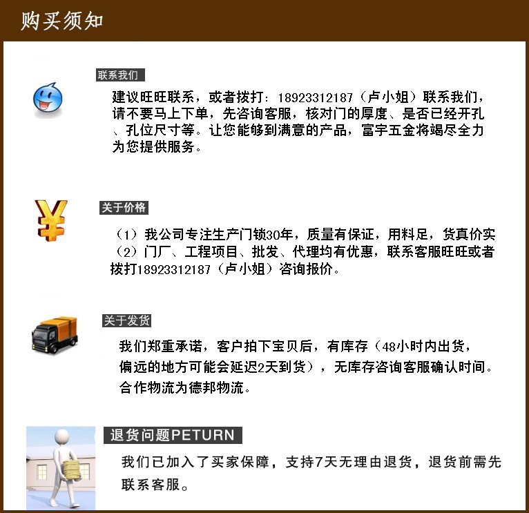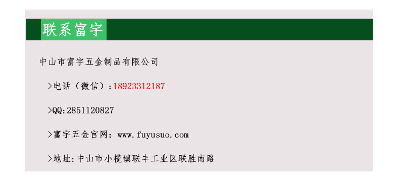 富宇五金专注于锁的研发和质量管理。凭借30年的锁具行业经验,它已成为该行业的绝对领导。面对猛烈的市场竞争,富宇公司不停引进高精度的进口和国产CNCcnc高精度装置,保存了技术实力,不停提高测试装置,并为生产顶门锁提供技术和质量保证。