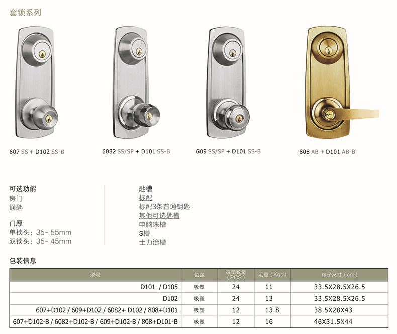 - 规格球形门锁+闭锁