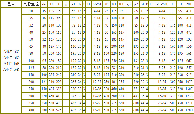 带扳手的四,A48Y,a44y型弹簧全行程安全阀整体尺寸和连接尺寸