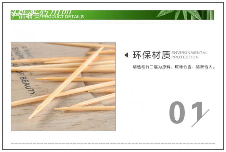 该产品兼具韧性的光泽和适量的圆度。它是由野生的老竹子制成的,没有农药残存。它是经过一再抛光和严苛杀菌后制成的。它可以扫除齿间空隙中的残留物,整洁牙齿并防止牙周炎。口腔保健日用品,天然竹节和环保