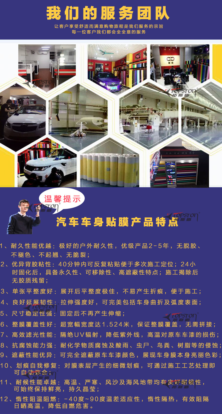 4.良好的延展性和柔韧:良好的拉伸强度,可以理想地涵盖车身的曲折曲面。