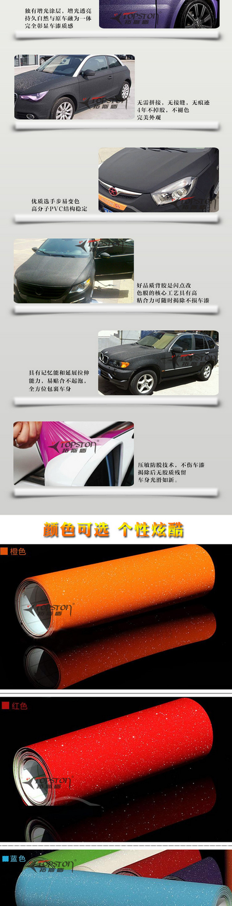 产品详情:广州拓斯盾汽车贴纸系列由车身彩色膜,3d碳纤维膜,电镀膜,珍珠膜,变色龙,天窗膜,前灯膜等构成,是一种高性能,平稳的高性能乙烯产品由聚氯乙烯薄膜和结实的胶粘剂构成,可以达到喷漆过程无法达到的功效,更凉爽,更夺目;维护汽车漆并遮盖划痕。(可以加工和切割)