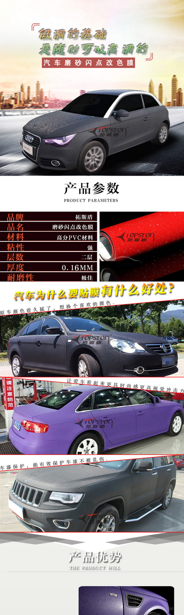 9.优异的遮盖性能:可以全然遮盖原车漆的色调,并表现出车身膜本身的鲜艳情调;
