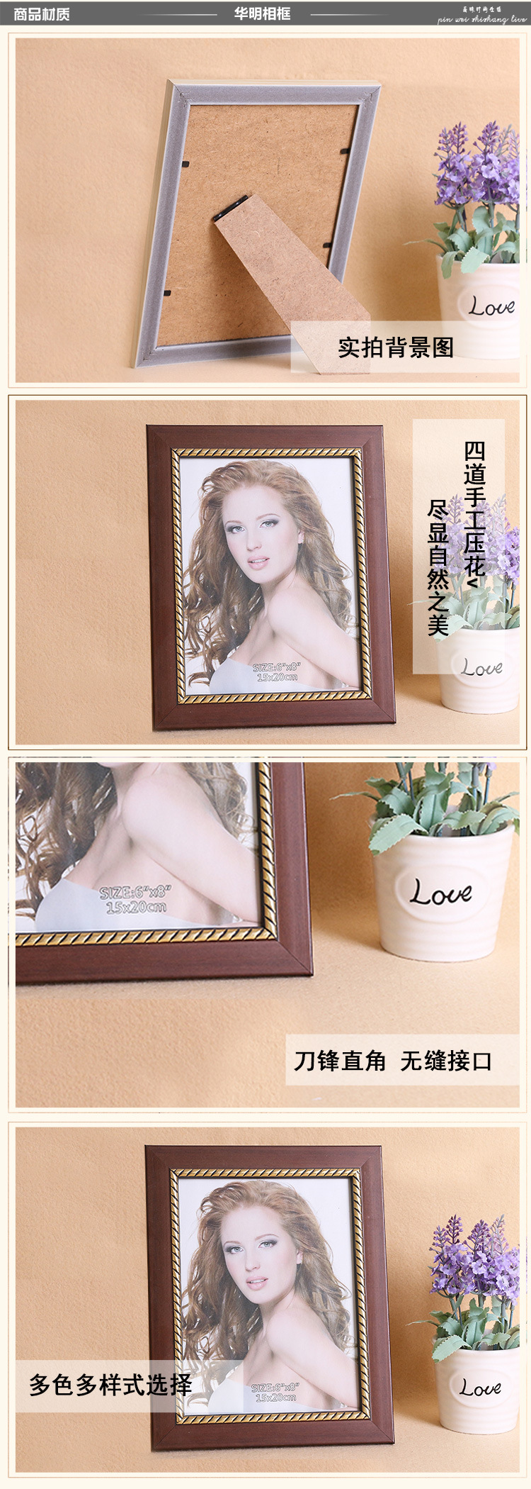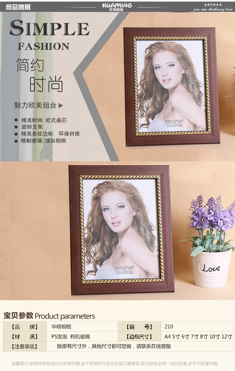 - 内框尺寸5寸9*13cm摆台,6寸10*15cm摆台,7寸13*18cm摆台,8寸15*20cm摆台,A4 21*29.7cm摆台,12寸20*30cm摆台