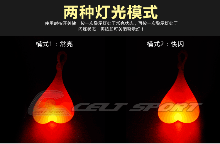 本产品涵盖电池。在采用时按开关,按一次开关,警告灯始终亮着,再按一次,警告灯闪光,然后再按一次,关闭警告灯!