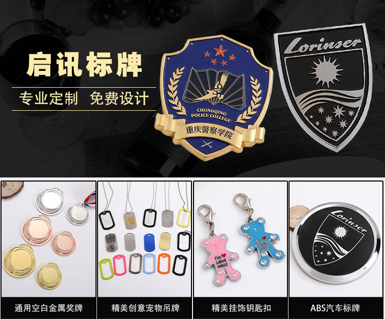 我们的工厂服务于标志行业,提供各种金属工艺品,奖章,标志,徽章,钥匙扣,汽车标志,车身贴纸,狗牌,开瓶器,领带夹和其他产品。我们自始至终深信高质量的服务和不停的升级以适于。客户确实需的是新市场产品。在提供服务之前,我们提供了真正,精良的产品展示图;在服务期间,我们会显示产品和运费的特性。如果您想更详尽地知晓和定制产品,可以直接与我们的工厂关联,为您提供周到的服务;服务后,我们将认真接纳卖家的合理性,公平的提议和批评,并不停健全。我们的主旨是成为客户在各个方面的最佳合作同伴,并为您化解疑问。