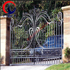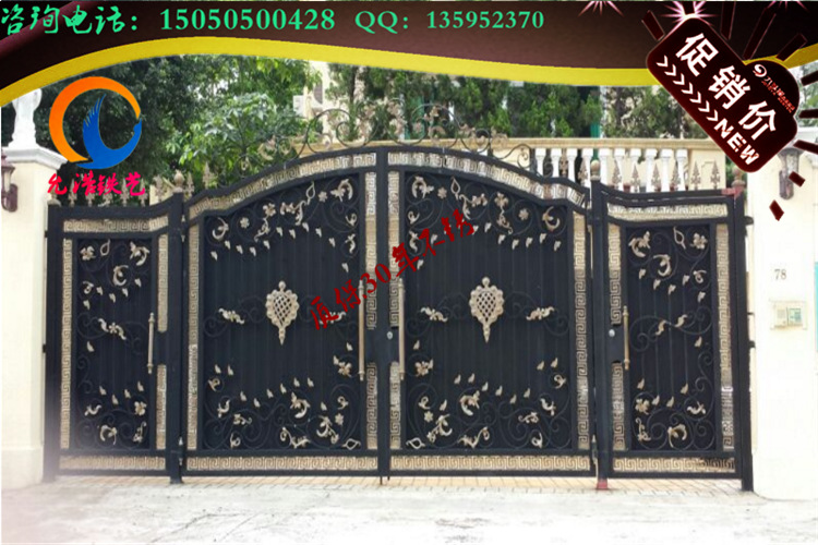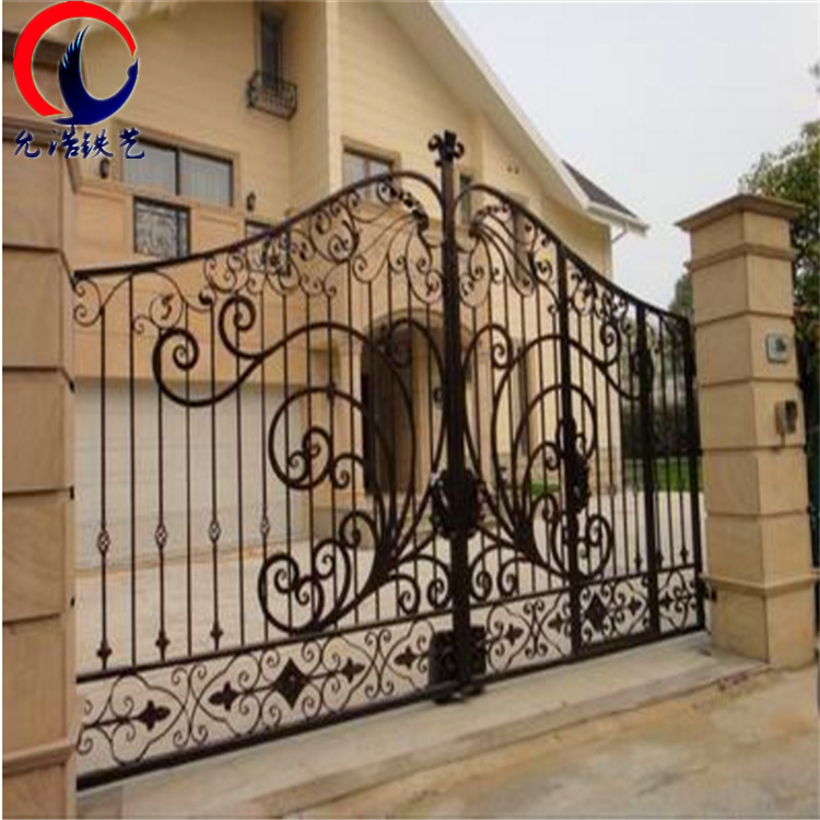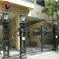 出口别墅大门铁艺庭院墙铁艺门大厦欧式复古锻造电动铁艺门铁艺花