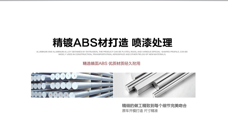 1.使用进口的ABS硬塑料为原材料,该产品经久耐用,可以在不同的环境条件下使用,不变动颜色,不变形,维护您的爱车,并使您的爱车更具立体感和立体感。赶上!