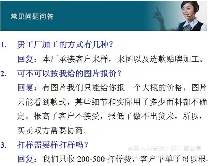 东莞市东安达针织有限公司locationglobal毛织贸易中心-----中国东莞大朗,ISO9002质量体系认证企业。公司享有独立自主的会议室,计算机提花针织机,打码机,熨烫站,缝纫机托盘,以及完整的生产线。有专业的设计师和图案制作者。公司专业生产各种外贸出口产品圣诞毛衣&成人毛衣及孩童毛衣,宠物狗毛衣,玩具毛衣,针织羊毛热水瓶,酒瓶套,杯套,针织高尔夫套,手套,帽,围巾;圣诞袜,防火羊毛(用以玩具);各种呢绒,针织鞋面等。欢迎来厂参观接洽业务。