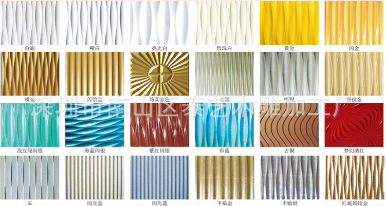 4,产品颜色:①色漆,②裂纹漆,③抗古漆,④手贴金银箔。其他颜色也可根据客户提供的色卡喷涂。