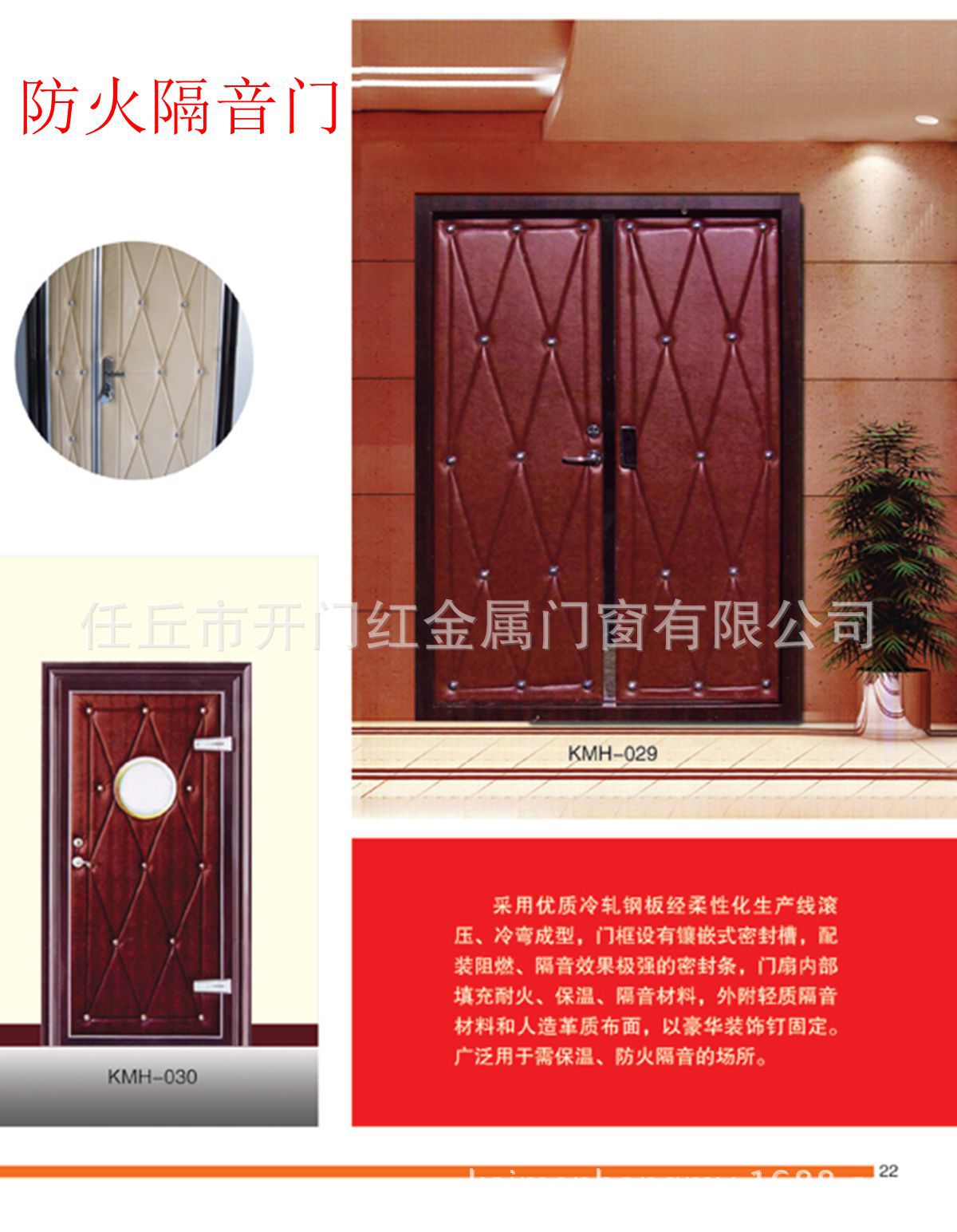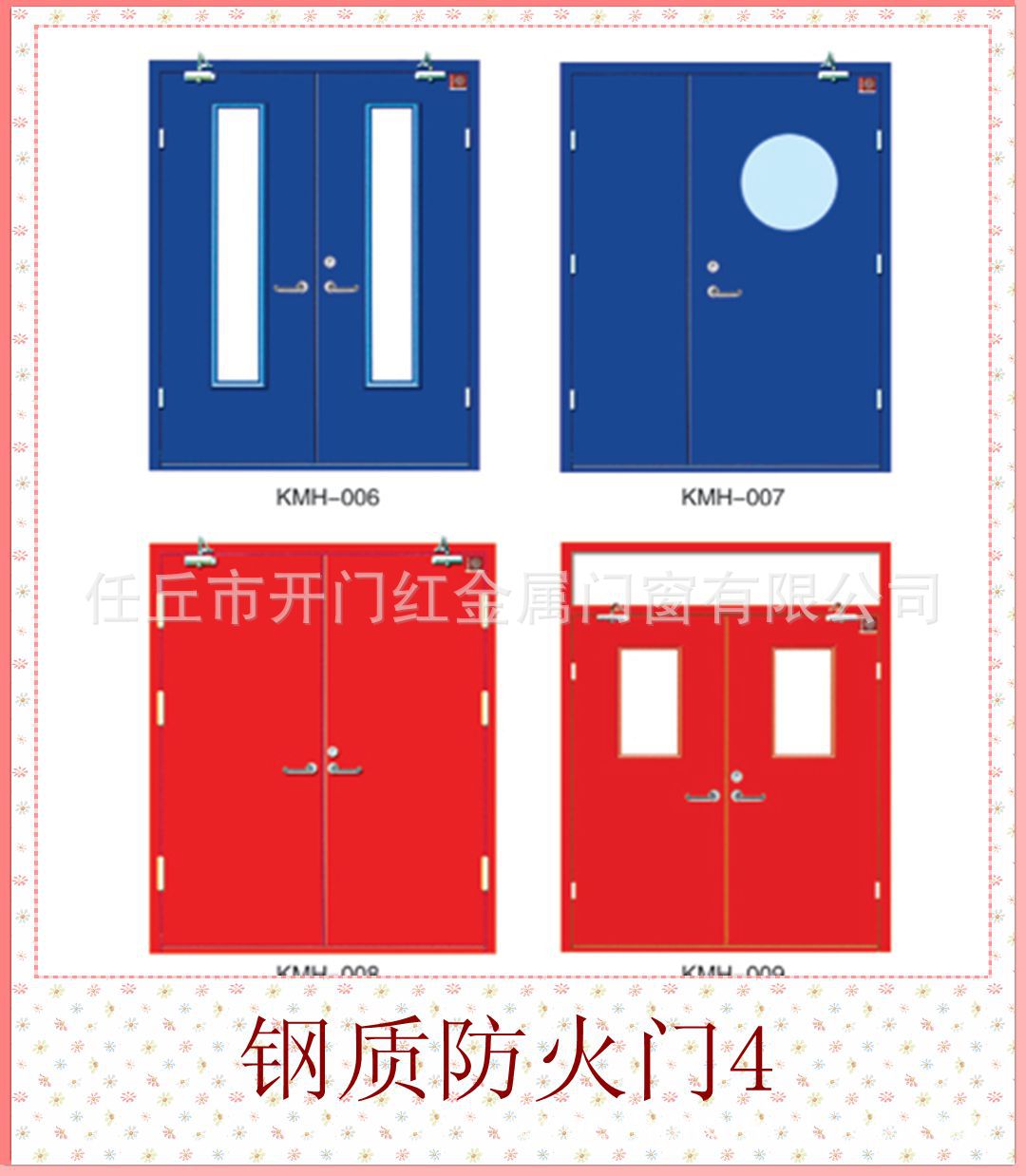 任丘市开门红金属门窗有限公司是一家实体制造商,专门生产钢质防火门,木质防火门,电管井防火门,无机织物防火卷帘门,钢质防火卷帘门,电动伸缩门,不锈钢伸缩门,豪华铝合金伸缩门门。
