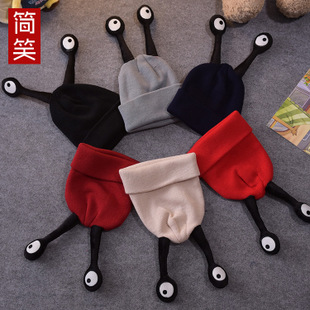 2016秋冬季超韩国风儿童有意思的双眼羊毛帽卡通片个人防虫帽婴孩帽