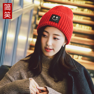 2016韩版新款女士针织帽汽车标记笑容加厚毛线帽保暖时尚套头帽批发