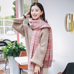 韩版秋冬男女格子围巾仿羊绒加厚保暖流苏披肩两用围巾厂家直销