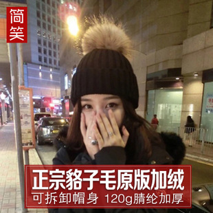 毛线帽女潮韩国冬季针织帽厚耳套头帽迷人毛毛球帽女冬季