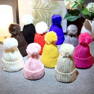 2016儿童针织帽带球糖果色毛线帽男女宝宝迷人连帽秋冬保暖帽
