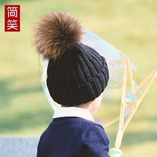 016韩版儿童针织帽,浣熊毛线帽,新生儿大毛球帽,户外卷发风帽