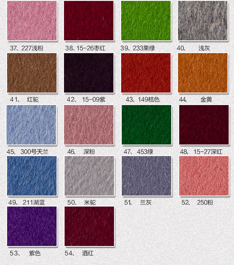 该公司的年产量:羊绒,羊毛,毛粘和其他类别的羊毛,双面羊毛,男士休闲羊毛和麦呢,羊毛含量超过80%,天鹅绒含量为120万米。产品远销@nz欧美,韩国,俄罗斯等国家和地区,以及国内著名品牌衣装公司。