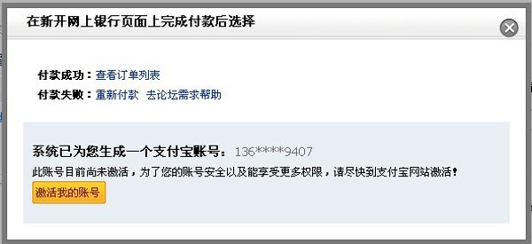 步骤5:付款完成后,原始页面会显示以下提示框,您可以在其中继续操作或关闭窗口