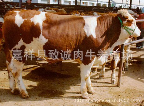 体形大,生长快,肌肉多,脂肪少西门塔尔牛公牛体身高可达150-160厘米,母牛可达135-142厘米,腿部肌肉兴旺,身躯呈圆柱状,脂肪少,早期生长速度为迅速,并且以其高的肉类生产性能而出名。瘦肉多山东梁山县畜牧局牛羊外调base-改良的育肥牛。出色的父本,可以交叉运用或改良当地品种。
