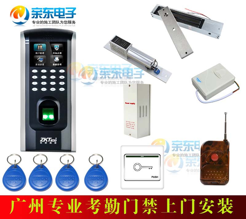 单开木门/消防门/铁门:F7门禁主机+门禁电源+280KG磁力锁1把+开关+门铃