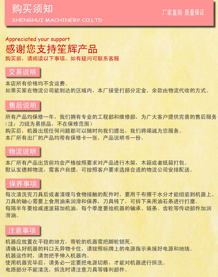 警告:最近,许多不负义务的贸易公司盗用了笙辉机械工厂实拍图表,以为自己保有自己的工厂,研发和生产的幻想。客户,请“探寻笙辉original,并防范假冒伪劣产品”笙辉机械欢迎所有新老客户随时到厂展开现场检查和洽商!