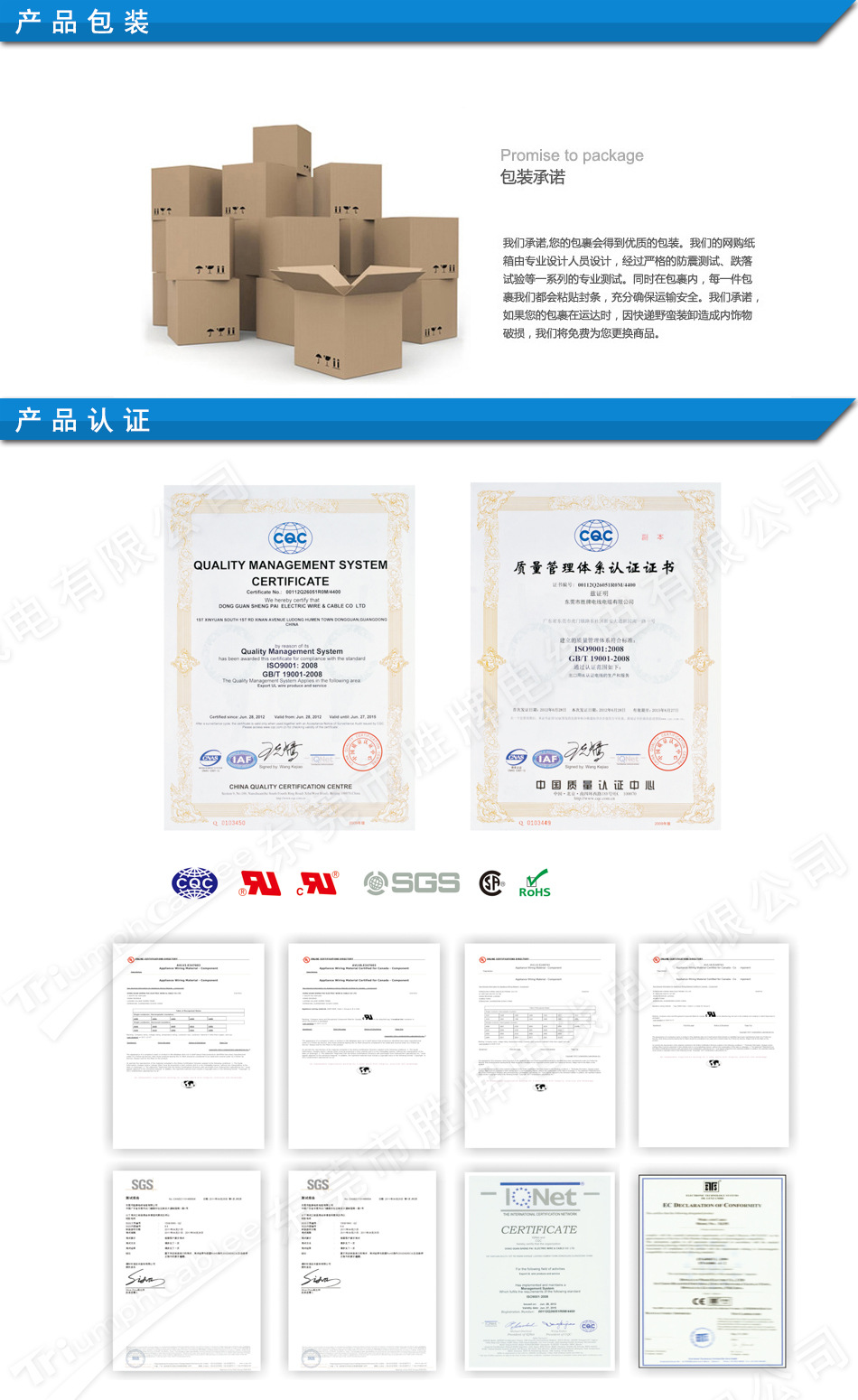 盛牌电线已取得三项认证,认证编号为(E249743,E249745,E347603)