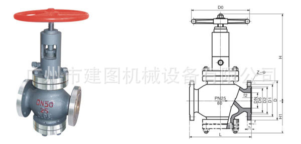 3.阀座的密封面采用锥形密封,有利阀本身洁净黏附在密封面上的污垢。