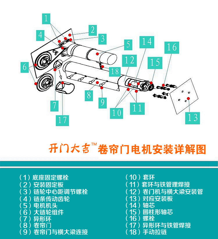 5)必须按照解释安装卷门机(电动机)。