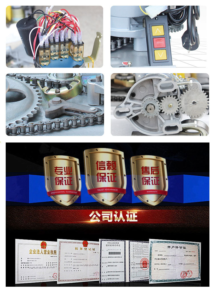●齿轮:使用经过特别处理的优质合金钢以确保起重强度。