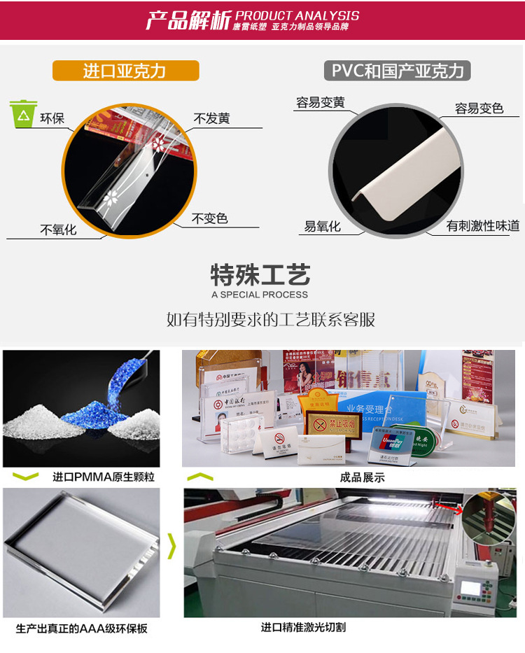 产品详情:丙烯酸,也叫作PMMA或亚加力,源自英文acrylic(丙烯酸塑料)。化学名叫做聚甲基丙烯酸甲酯,这是较早开发的一种举足轻重的塑料聚合物材质。它具备不错的透明度,化学稳定性,耐候性,易于染色,易于加工和美观。它在建筑物行业中具备普遍的应用。应用:有机玻璃产品一般而言可分成铸板,挤压板和模塑料。