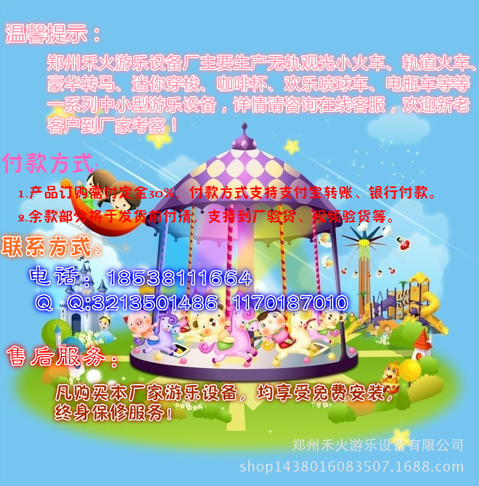【豪华旋转木马】基准:8座,12座,16座,24座,36座;可以分成上驾驶豪华旋转木马和下驾驶豪华旋转木马。