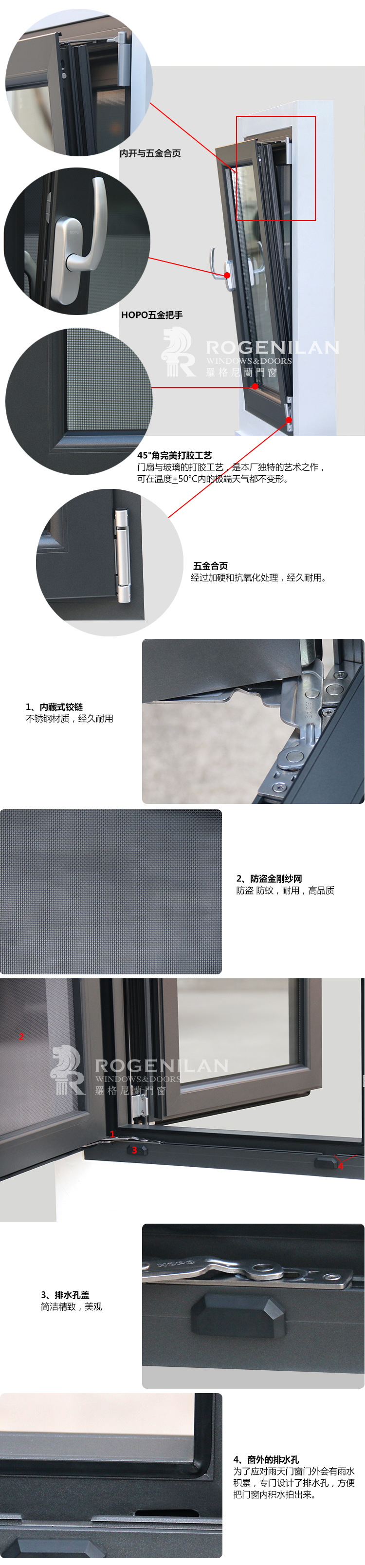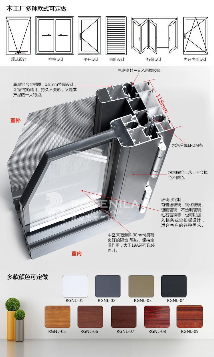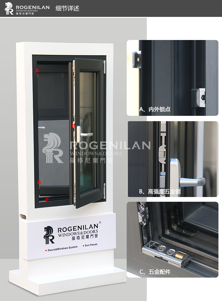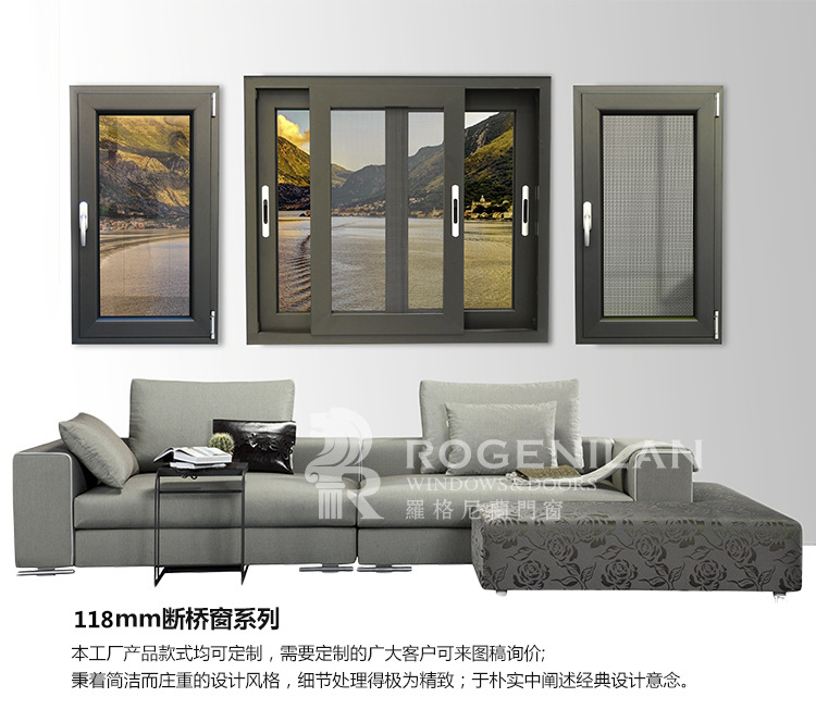 产品详情:罗格尼兰铝门窗平开窗里面打开窗户打开里面的窗户推拉窗custom