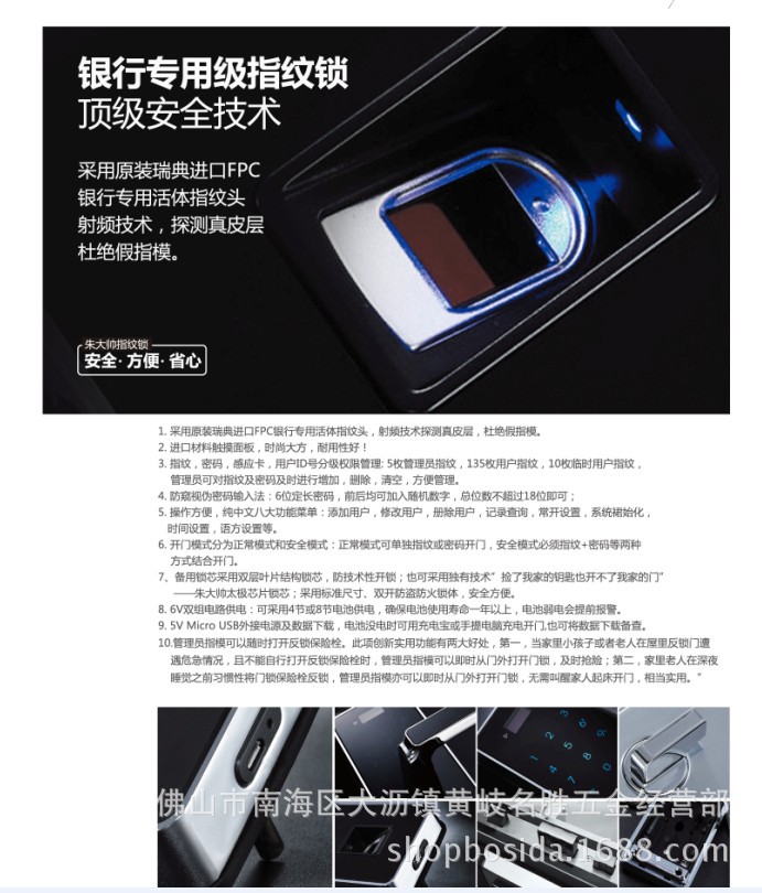 2.先进的海洋生物指纹识别技术可以护送并防范冒充指纹。以第吉尔fingerprint锁为例,使用先进的生物体指纹技术:只有在辨认出真皮并有生命体征时才可以敞开门高识别率(560dpi,超过国家标准的500dpi),指纹读取器的重量为850公斤,有效性防范了复制指纹的凶险!
