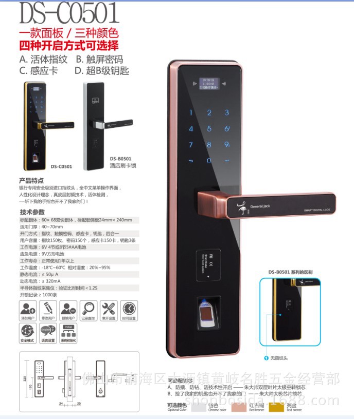 3.不锈钢材料,坚实结实,自动锁紧,化解后顾之忧!以第吉尔fingerprint锁为例,插入芯的材质全部为不锈钢,防锈强壮,牢固。闭门锁具有排他性和排他性,有效地化解了琐碎而麻烦的防锁,大大提高了门锁的安全性能。