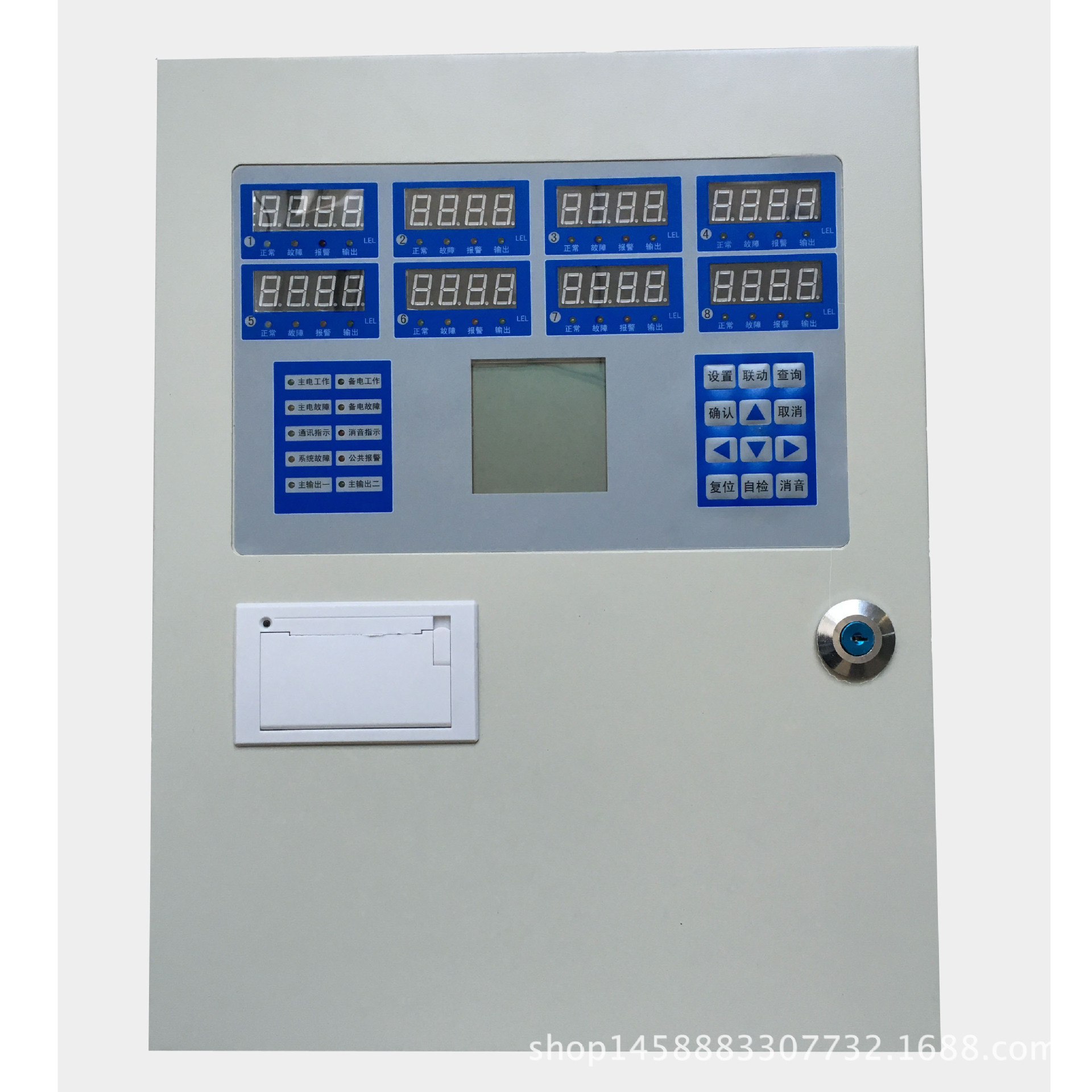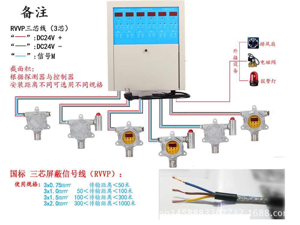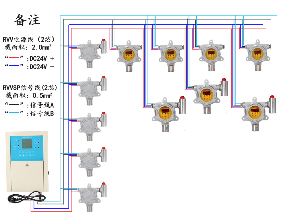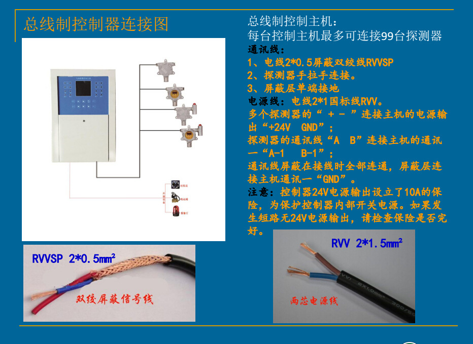 总线系统主机:外形尺寸:总线系统控制器:360*250*75mm;接线方式:四线制;可以同时控制30个或更多检测器,独立工作不会互为影响!