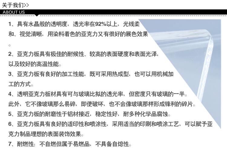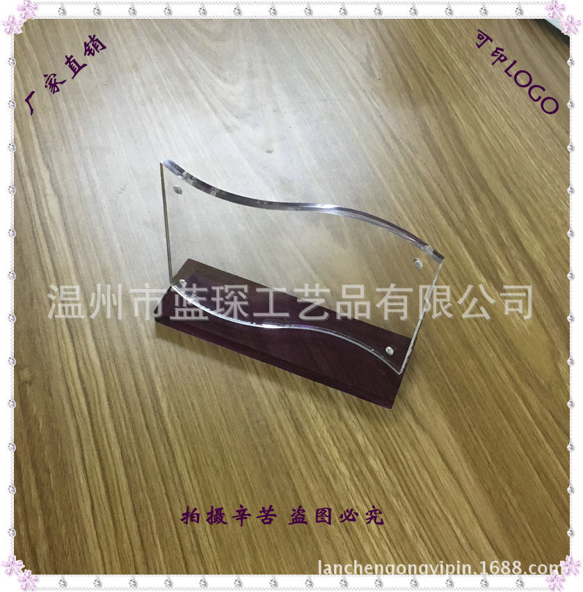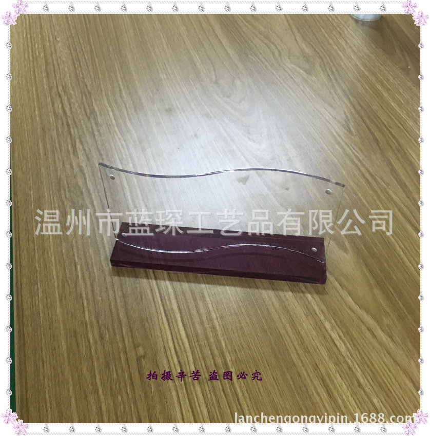 产品详情:温州市蓝琛工艺品有限公司是一家专业生产和加工有机玻璃,丙烯酸,无纺布及其他手工艺品的企业,工厂面积1800平方米,职工50余人。它具备大量在手工业中服务多年的技术和管理人员。它使用国内外先进的生产装置和技术,以及完整,科学的质量管理体系,以保证产品质量和生产。公司的主要产品有:有机玻璃,亚克力展示架系列,相框系列,酒盒系列,餐巾纸箱系列,名片盒系列,灯箱系列,手机座系列,刀架系列,广告牌系列,酒类。品牌系列,台卡系列,工号牌系列,广告牌系列;无纺布加工;包装袋等产品。