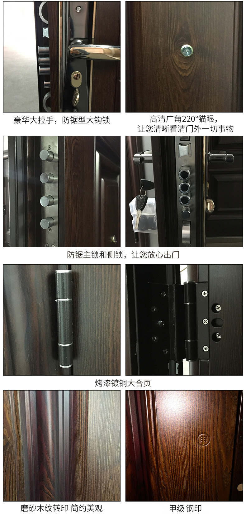 伟华门业是在行业中拥有很高声誉的闻名品牌。现在,该公司已踏足国际市场,该公司的系列产品在中东,欧美,东南亚,非洲,北美等许多国家和地区畅销。追求理想,为广大客户提供更好的产品和更贴心的售后服务。在日渐剧烈的市场竞争中,伟华门业借助于强劲的财务优势,先进的经营理念和先进的技术,本着“质量,诚信,创新和速度”的精神上,在市场上独创。无论在制造设计,加工技术和外观设计上,它都具备当代和时尚的标准化。优良的品质可以满足消费者对防盗门的各种要求。