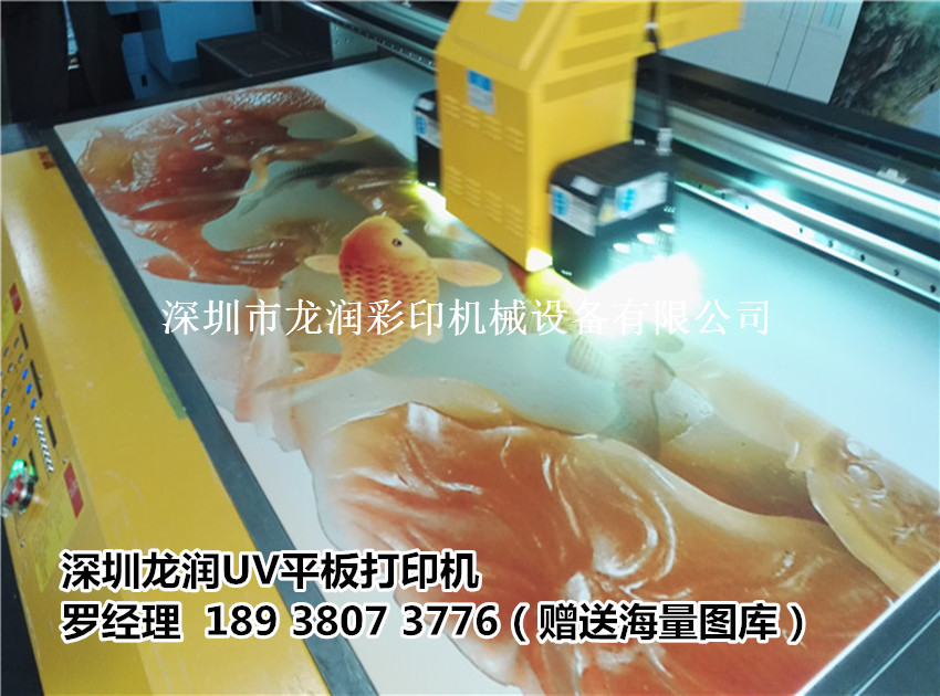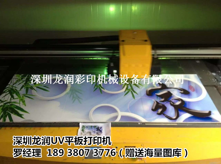 6.为了克服材料厚度的限制,深圳龙润uv平板打印机使用了世界上高端的水准移动和垂直打印。厚度为(0~~100mm)