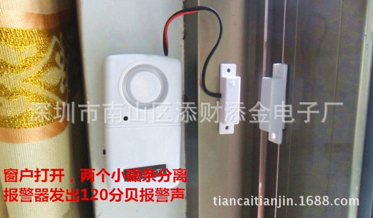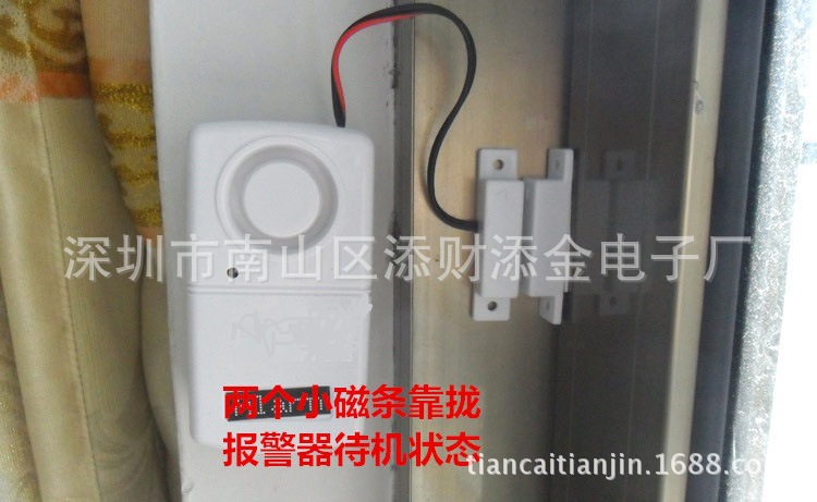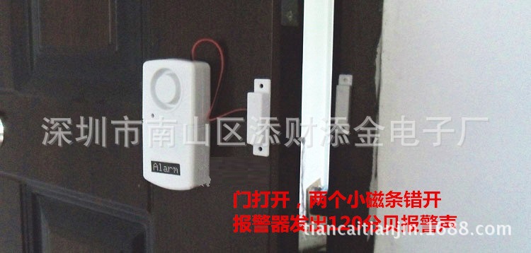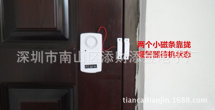 产品尺寸:警报尺寸,10*5.3*2.3cm门磁尺寸,5.5*1.2*1.2cm(带贴纸)