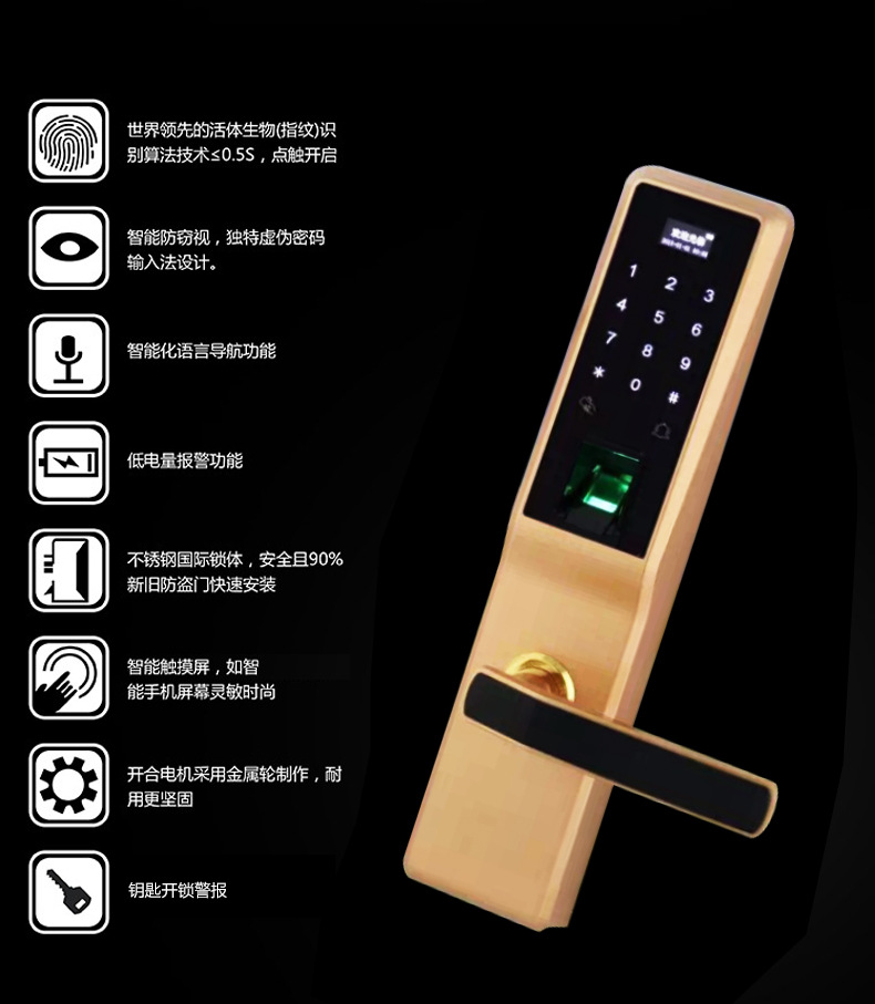 该公司独立自主设计,开发,制造和销售。产品理念先进,技术先进,技术精湛,质量优良。所有产品都是自建模,编程,测试和组装。它已申请了多项国家专利,并与多家高端智能家居品牌oem,OEMprocessing,以及多个高端智能房地产项目成立了合作关系,公司的产品保有完整的售后服务体系,是目前指纹锁市场的领先品牌,货源制造商。
