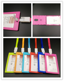 厂家定制双面透明PVC硬质学生身份证套挂绳展会证卡套装组合